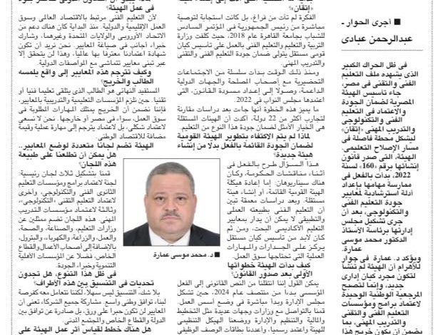 Dr. Mohamed Moussa Emara: “We Aim to Restore Confidence in Technical Education… and the Accreditation Standards Will Not Be Just Words on Paper”